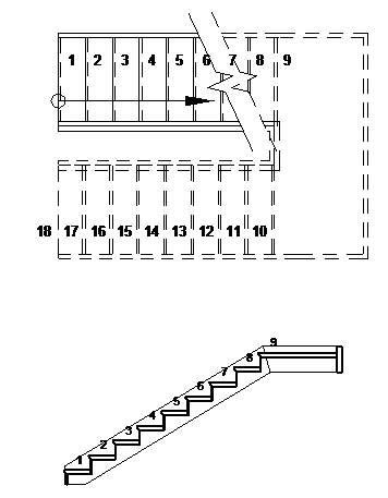 Note: Hidden lines do not display for component-based stairs in perspective views or in views whose visual style is Wireframe.