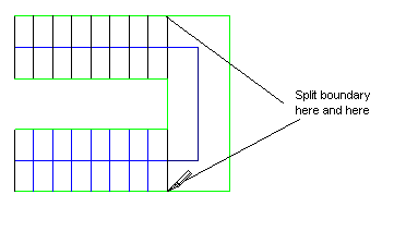 When a landing is included in stairs created by sketching boundary and riser lines, split the boundary lines where they meet the landing so the railing accurately follows the landing and the slope of the stairs.