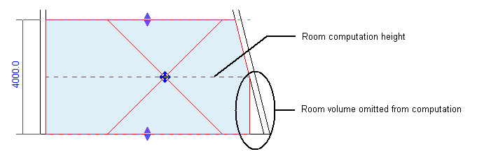 In a section view, you can also check whether Revit is omitting parts of the room from its volume computations. This may be caused by a combination of sloping walls and the computation height that is defined for the corresponding level, or by other situations. See About the Computation Height for Rooms and Situations That Can Affect Room Volume Computations.