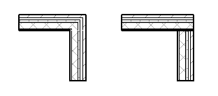 You can change how the join displays in a plan view by selecting a join option other than Butt (Miter or Square-off) or by specifying a different order in which the walls butt up or square off against one another.