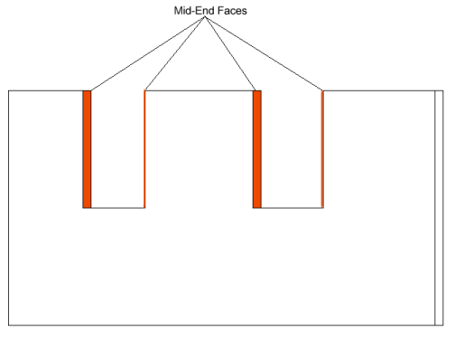 When you edit the elevation profile of a wall that spans multiple levels and create notches such as those shown below, the new vertical edges represent jambs that are referred to in Revit as mid-end faces. Other walls can form corner joins with mid-end faces.