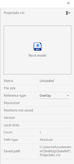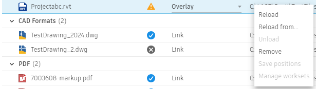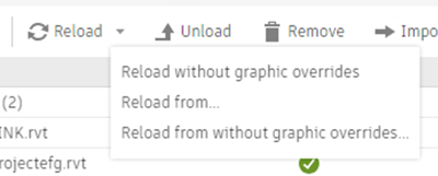 Use the operation tools listed at top for the desired actions, such as reload with or without graphic overrides, unload, and remove. They are dynamically generated based on the type and status for the linked file.