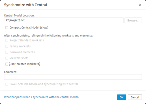If you do not want to keep ownership of the checked out worksets and borrowed elements, click Relinquish elements and worksets; otherwise, click Keep ownership of elements and worksets.