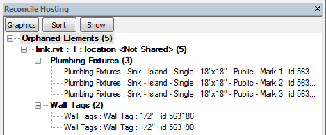 - To rehost an orphaned element, select the element in the Reconcile Hosting browser, right-click, and click Pick Host. Then in the drawing area, select the new host.