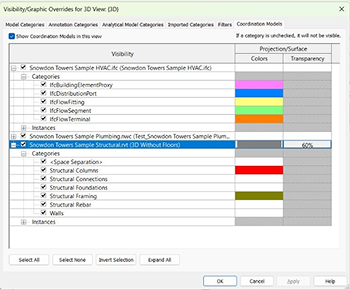 Starting with the Revit 2026 release, you can control the graphical appearance and objects visibility of the coordination model as follows: