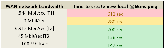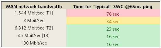 Note that our reported "WAN network bandwidth" reflects the actual throughput of the network, not the rating of the connection. External factors such as unrelated streaming traffic can reduce available real-world bandwidth, so we recommend validating the behavior of the network during periods of typical utilization. This can be accomplished easily by measuring the amount of time required to copy a few hundred megabytes of data from on point on the network to another. (Note that care must be exercised to ensure that network compression and packet shaping do not affect the performance of the operation.