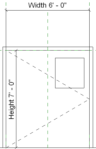 You decide to change the width of the door, but you want the window width to stay the same. You expect its position to remain unchanged; however, observe what happens when you increase the width of the door using the Family Types tool.
