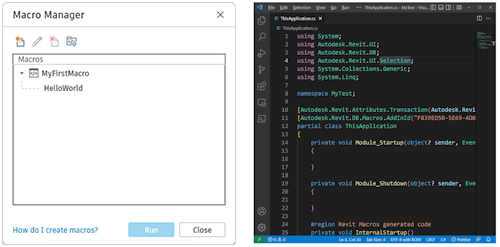 In addition to those API extensions, you can use the API to define macros that run in Revit. We will explain the API differences later in this topic, but for experienced developers, note that you do not need to register the macros in Revit.ini, or add RevitAPI.dll as a reference.