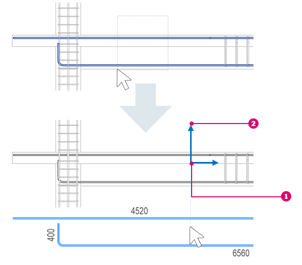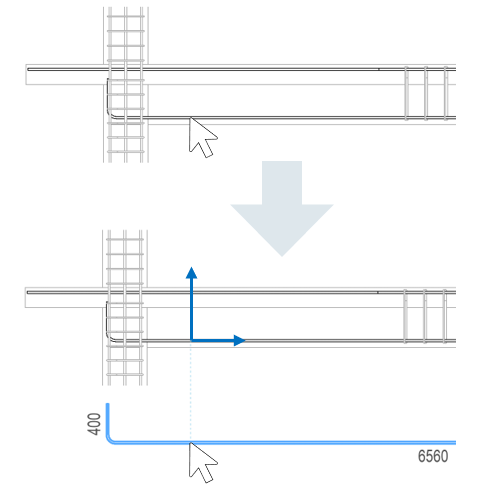 Mode panel, and align the bending detail in the vertical or horizontal direction with respect to the selected rebar. The point clicked when selecting the rebar is used as a reference for aligning the bending detail.