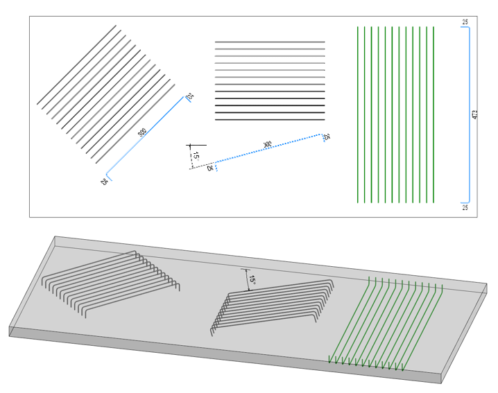 | Rebar (parallel to view) | Bending Detail - Angle 0° | Bending Detail - Angle 30° |