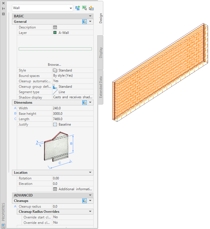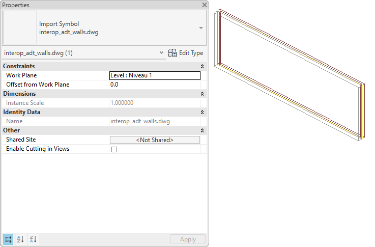 The following properties are added to the imported wall: