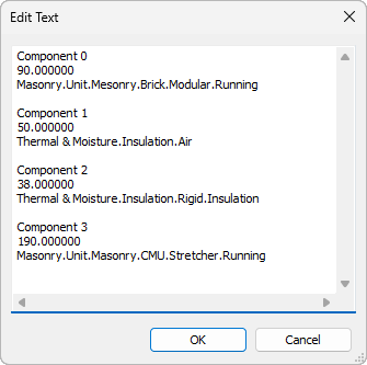 - Component Description: list of wall components, their materials and size