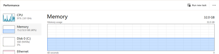 - Windows Task Manager may assist with total and available RAM statistics.