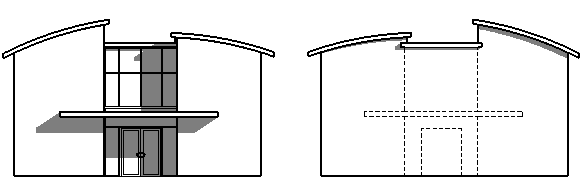 For example, you have an entrance on the south elevation, and you want to show an outline of this entrance using hidden lines on the north elevation.