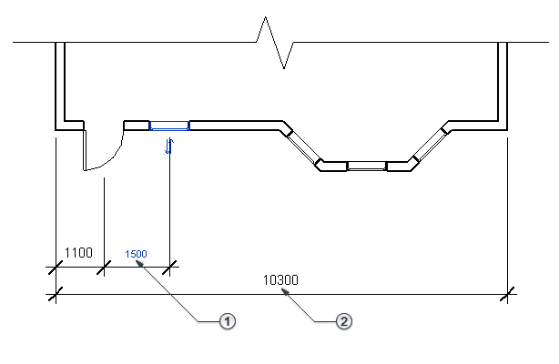 When dimensioning elements such as doors and windows, you can select either the edge of the opening or the center of the element.