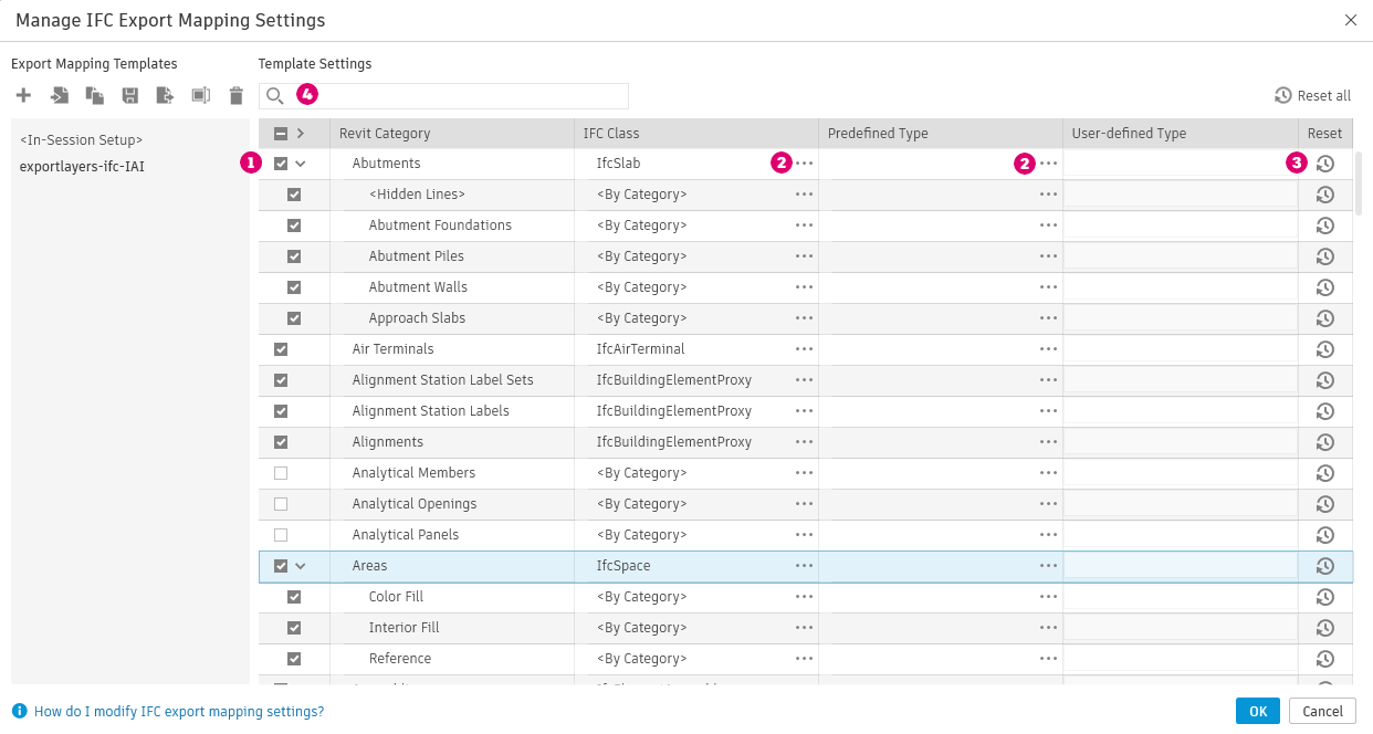 Create and manage templates for use when exporting Revit models to IFC.