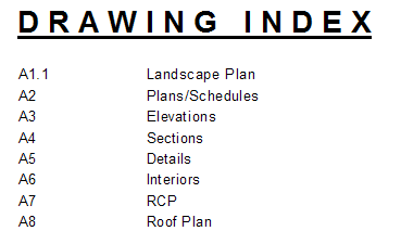You can use a sheet list as a table of contents for a construction document set.