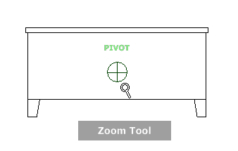 When changing the magnification of a model with the Zoom tool, you cannot zoom in any farther than the focus point or out past the extents of the model. The direction in which you can zoom in and out is controlled by the center point set by the Center tool.