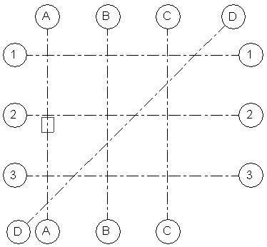 If a column lies equidistant to two or more grid intersections, you can select the intersection as you would in a multiple grid line intersection.
