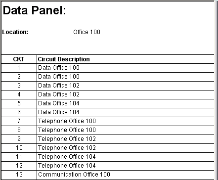 Data panel schedule with one circuit column