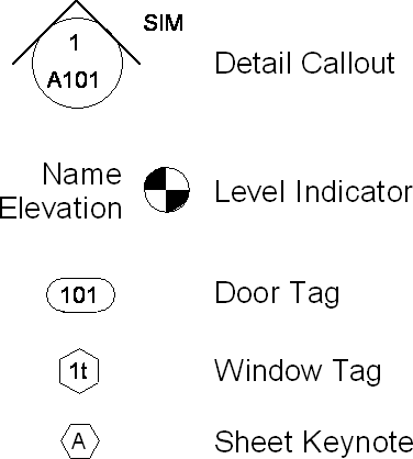 The following symbol legend identifies the annotation symbols that are used in a set of construction documents.
