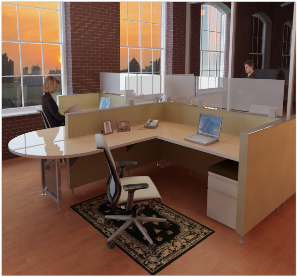 When you place office clutter in a view, you can modify its properties. For office chairs, you can specify their materials and colors, whether they are tilted and turned, and other characteristics. For a picture frame, you can specify its orientation (landscape or portrait), whether it stands on a desk or hangs on a wall, and an image to display in the frame. For a notebook computer, you can specify whether it is opened or closed, powered on or off, or displays an image on the screen.