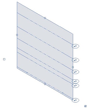 When you select a grid, its plane displays as a blue planar vertical surface, in-canvas controls appear, and its properties display on the Properties palette. When you only hover over a grid, its plane highlights as a blue planar vertical surface.