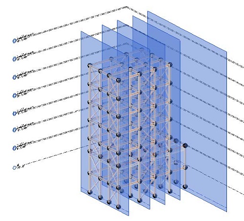 Note: You can't add grids in a 3D view, but you can copy existing levels and paste them elsewhere in the view.