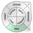 Access 2D and 3D navigation aids using SteeringWheels. The 3 big SteeringWheels and 3 mini SteeringWheels each provide access to many navigation methods.