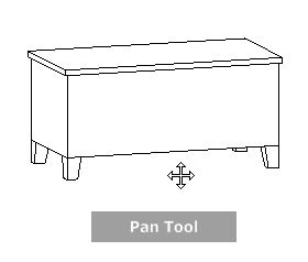 When the pan tool is active, the Pan cursor (a four-sided arrow) displays. Dragging the mouse moves the model in the same direction. For example, dragging upward moves the model up while dragging downward moves the model down.