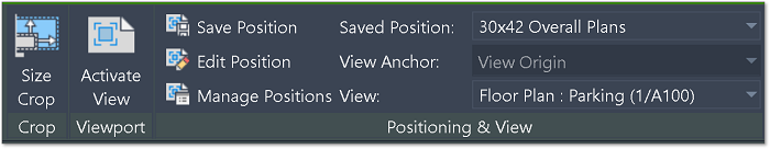 Positioning & View panel commands to save, edit, and manage positions on a sheet.