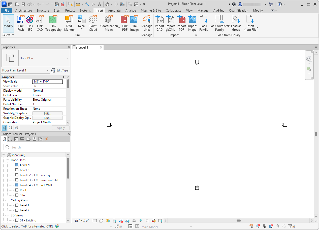 The drawing area (canvas) displays views (and sheets and schedules) of the current model. Each time you open a view in a model, the view displays in the drawing area.