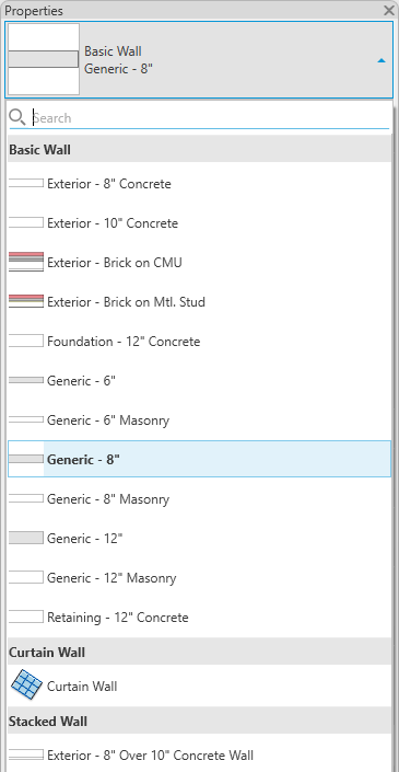 The Type Selector identifies the currently selected family type and provides a drop-down from which you can select a different type.