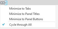 | specify the preferred method for minimizing the ribbon | to the right of the ribbon tabs, click the right arrow and select the desired behavior: Minimize to Tabs, Minimize to Panel Titles, Minimize to Panel Buttons, or Cycle through All.