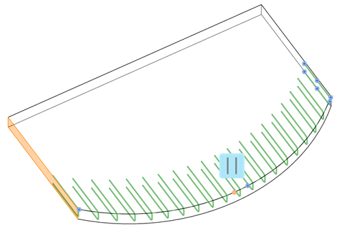 When applying path shape distribution to a circular concrete host, bars are arranged without overlapping at the path's ends. Adjust the range by dragging the path endpoints.