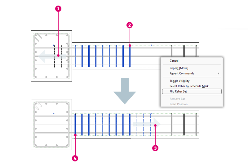 - Start placing rebar using any of the rebar tools (Rebar, Path or Morphed Free Form Rebar) OR select an existing rebar set.
