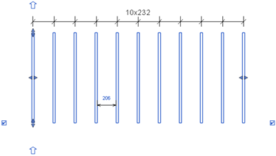 - Dragging the shape handles modifies the number of bars in the set, while maintaining a distance that is no smaller than the minimum amount of clear spacing you defined.