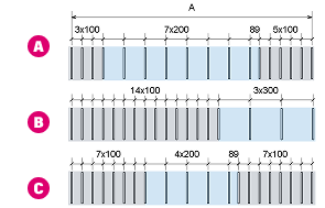- Specify the formula for distributing the bars in the set, using a combination of numbers, lengths or length percentages and spacings. You can use the following syntax when defining the layout formula: