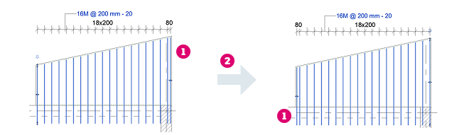 - Dragging the shape handles modifies the number of rebar instances in the set, while maintaining a distance that is no larger than the maximum spacing you defined.