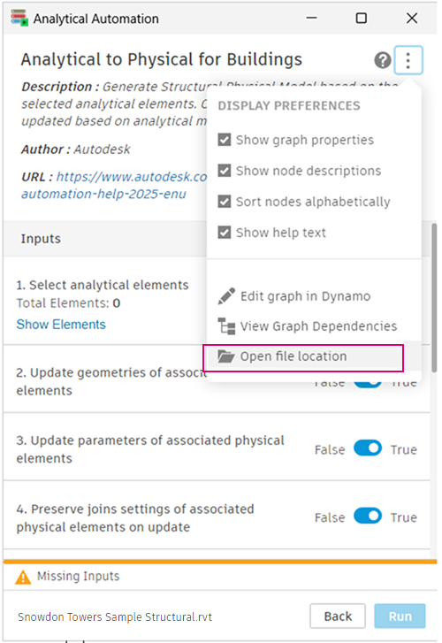 Both the Physical to Analytical for Buildings and the Analytical to Physical for Buildings automation tools are powered by a Dynamo script.