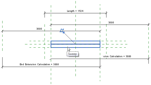 - Repeat the process in step 7 to delete the reference line to the right of the sweep.