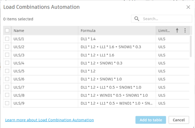 You can revisit the results list at any time and add more load combinations to your project from this automation results list.