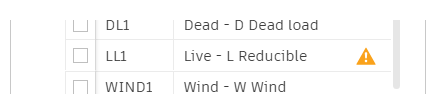 The load cases not aligned with the selected design code are marked once the design code is selected.