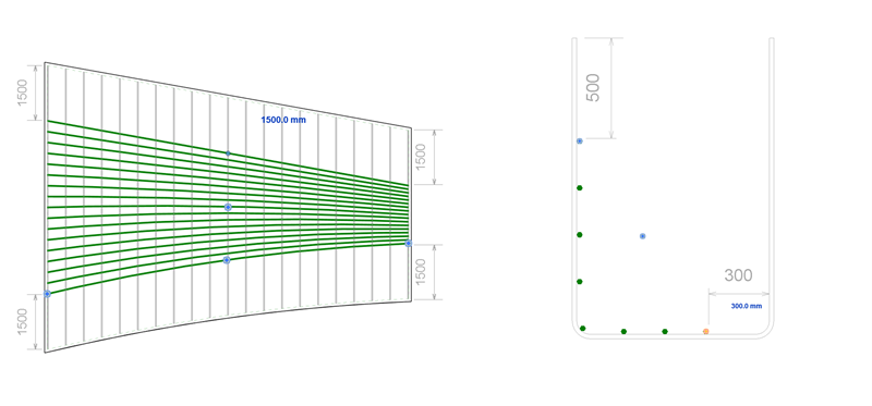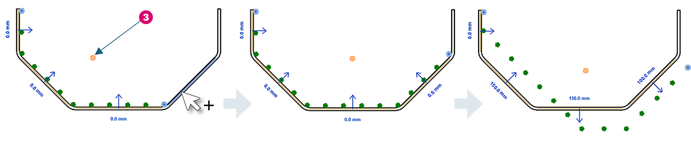 Like shape driven rebar, the morphed rebar driven distribution has handles which you can drag to adjust the range of the set or length of bars.