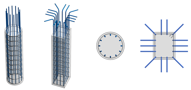 Place a rebar set that in columns by selecting one of the stirrup sets. Use circular stirrups, spiral rebar or rebar shapes with multiple segments.
