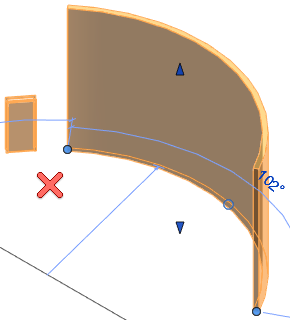 | For example, this curved wall hosts a door. | When you change the wall this way, it can no longer host the door, and the error occurs. |