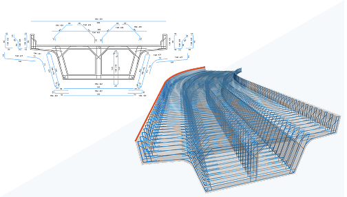 Create longitudinal reinforcement directly from transverse rebar. Longitudinal bars follow stirrups, spirals, or multi-segment shapes and update automatically as transverse geometry changes. This new method can be used for both civil structures (bridges, tunnels), as well as typical building elements.