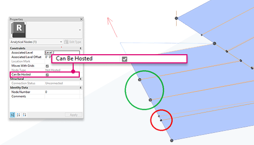 When hosting is disabled, supported analytical elements can react independently to geometric changes; when enabled, they update collectively. This relationship is preserved for future edits, giving you predictable control over model behavior.