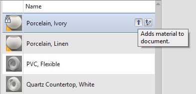 To add a material to the current project, first find the material in an existing library, then use one of these methods:
