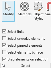 If the ability to select links and their elements interferes with your ability to select elements in the project, disable this option. When Select Links is disabled, you can still snap and align to elements in links.